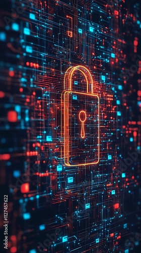 Fototapeta premium A digital lock icon surrounded by a network of glowing data streams,...