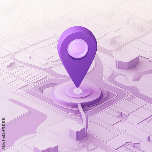 Fototapeta premium A digital map with dynamic colors and a neon pink location pin, symbolizing tech-driven exploration, with subtle grid lines for a futuristic feel.