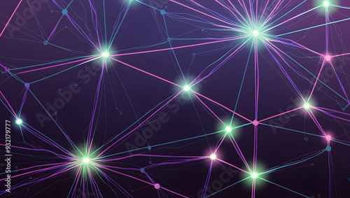 Fototapeta premium A digital neural network with interconnected, glowing nodes floating against a dark, starry background