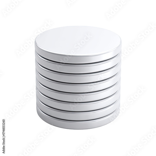 © a muh sakaria, Obraz premium A digital rendering of a stack of ten smooth, white, cylindrical disks, reminiscent of a database or server icon