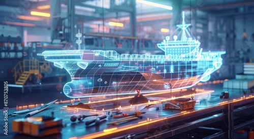 © Punn, Fototapeta premium A digital rendering of an cargo ship in the process