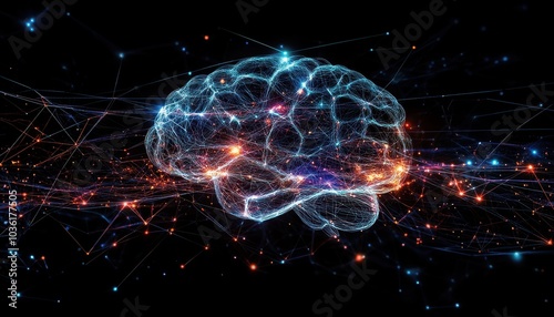 Naklejka premium A digital representation of a brain with colorful neural connections and patterns