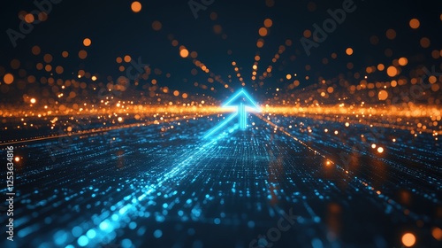 © Stockfish, Obraz premium A digital representation of an upward arrow amidst glowing particles.