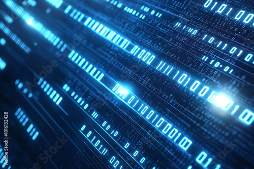 Obraz premium A digital representation of binary code flowing in a futuristic manner,...