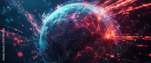 Fototapeta premium A digital representation of Earth with dynamic, glowing connections and energy.