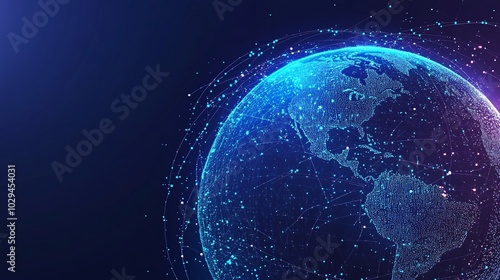 © Alicia, Obraz premium A digital representation of Earth with glowing lines connecting points on the surface.