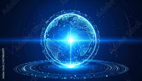 Fototapeta premium A digital representation of Earth with glowing neon lights and connections