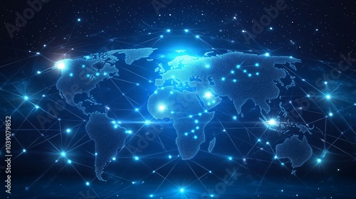 © Alicia, Obraz premium A digital representation of the Earth with glowing lines and points connecting continents.