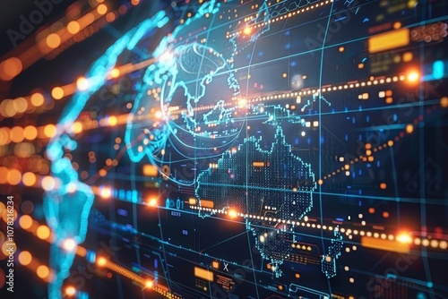 Obraz premium A Digital Representation of the World With Interconnected Data Points and...