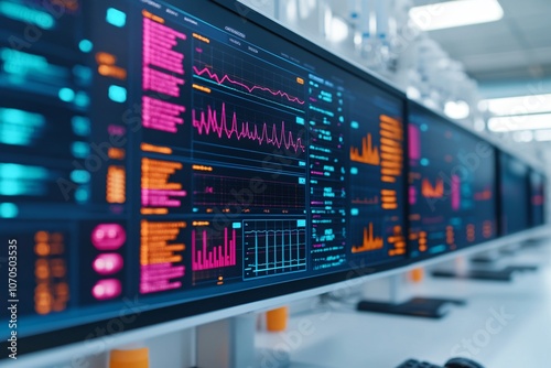 Obraz premium A digital screen showing a time-series analysis of drug efficacy, with graphs...