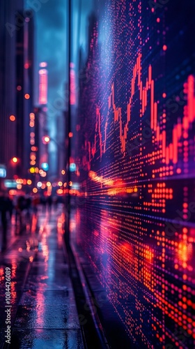 © Todd's Studio, Obraz premium a digital stock market graph with red and blue colors on a black background,