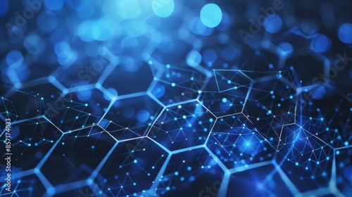 © nattapon98, Obraz premium A digital technology background with blue connected hexagons