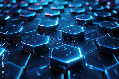 © nattapon98, Obraz premium A digital technology background with blue connected hexagons