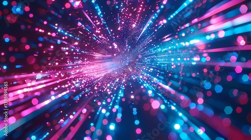 © Jbgoals, Obraz premium A digital technology metaverse neon blue pink background, cyber information, abstract speed connect communication, innovation future meta tech, Generative AI illustrations.