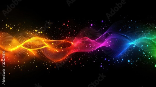 © Chayna, Fototapeta premium A digital wave pattern in vibrant neon colors on a dark background.
