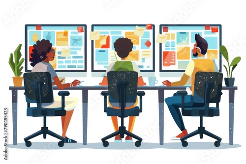 Fototapeta premium A digital workspace where professionals share insights and plan agendas for a productive session.