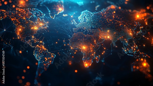 Obraz premium A Digital World Map with Glowing Points and Lines