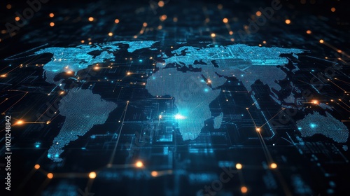 Fototapeta premium A digital world map with interconnected data points, illustrating global...