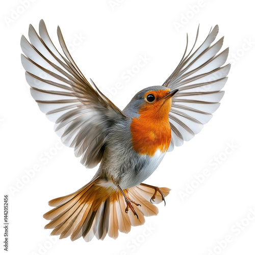 © Agri, Fototapeta premium A digitally enhanced image of a robin in mid-flight, showcasing detailed features and vibrant colors.