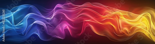 © WACHI, Fototapeta premium A digitally generated abstract painting. It features a gradient of blue, purple, pink, orange, and yellow.