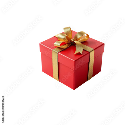 © Mohini, Obraz premium A digitally rendered, festive red gift box, adorned with a gold ribbon bow and subtle snowflake pattern.