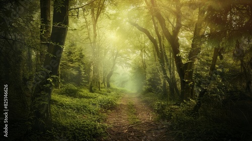© N0X, Obraz premium A dirt path winds through a dense forest