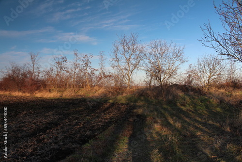 © parpalac, Obraz premium A dirt path with trees on the side