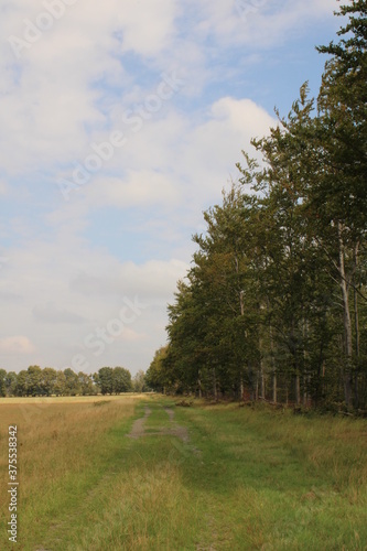 © Daniel, Obraz premium A dirt road between a field and trees