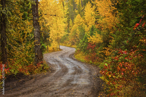 © Damien Richard, Obraz premium A dirt road in a forest in fall