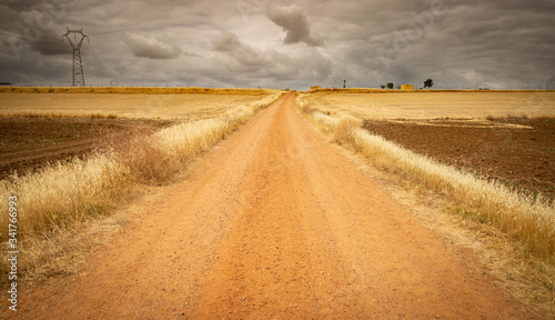 © Jorge Anastacio, Fototapeta premium a dirt road on a summer landscape and a dramatic cloudy sky
