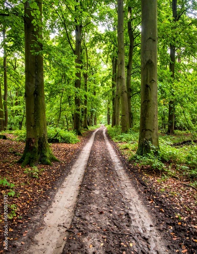 © Jihad, Obraz premium A dirt road winds through a lush forest