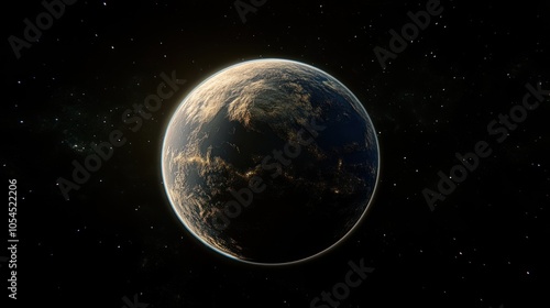 Fototapeta premium A distant planet viewed from space, showcasing its surface and atmosphere.