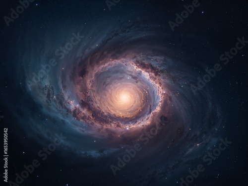 © Ta Sher, Obraz premium A Distant Spiral Galaxy with a Luminous Core and Swirling Nebulae in Dark Cosmos.