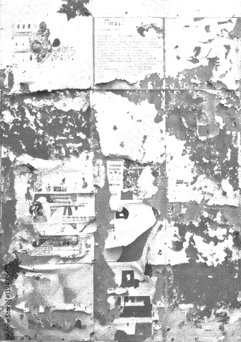 © CROP MEDIA, Fototapeta premium A distressed urban texture of wet, wrinkled posters partially peeling Halftone Abstract Line Texture background