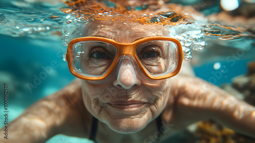 © Ryu, Naklejka premium A Dive Into Life's Depths: A Captivating Portrait of an Elderly Diver Exploring the Underwater World