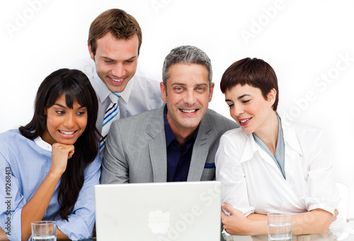 Fototapeta premium A diverse business group using a laptop