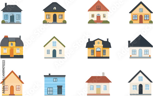 Fototapeta premium A diverse collection of house icons representing various architectural styles and housing types.