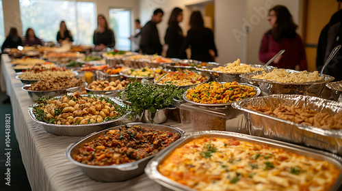Fototapeta premium A Diverse Feast Awaits at the Community Potluck Table