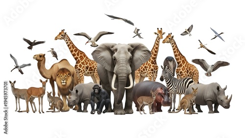 © Abdul, Obraz premium A diverse group of wild animals standing together on transparent background