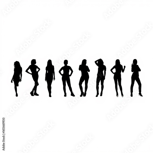 Obraz premium A diverse group of women in silhouette poses against a plain white background