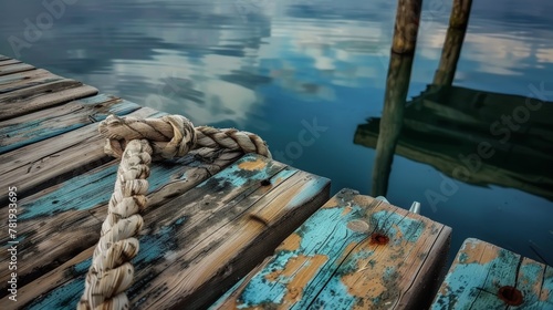 Obraz premium A dock with a rope tied to it and a rope tied to the other side of the dock