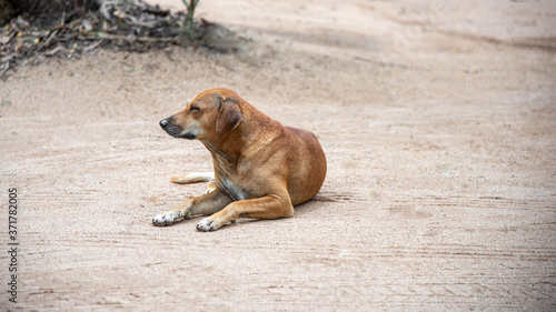 Fototapeta premium a dog abandoned at a temple in Thailand