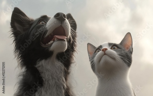 © SH Design, Obraz premium A dog and a cat are standing next to each other, looking at the camera