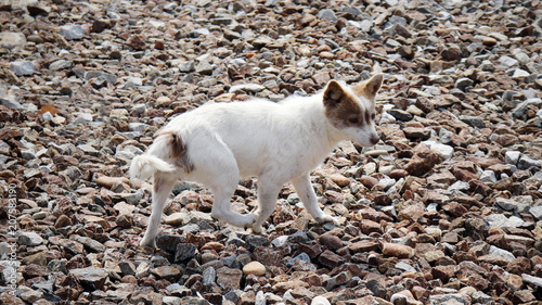 © Hyejin Kang, Fototapeta premium A dog running around the gravelly field.