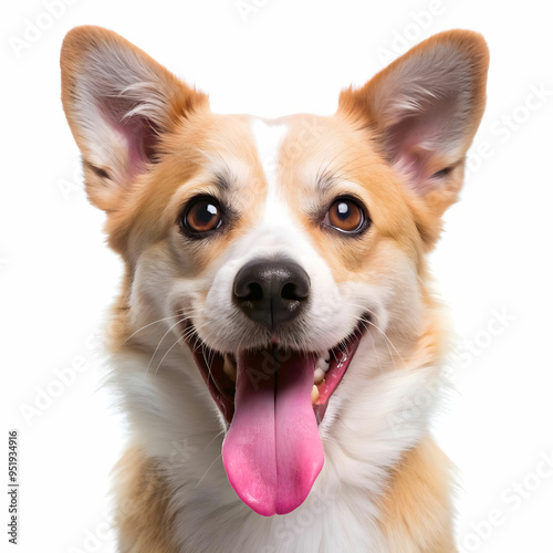 © Zeeshan, Obraz premium a dog with a pink tongue that is smiling on white background