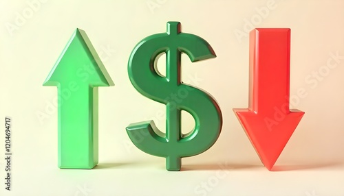 Fototapeta premium A dollar symbol with green up and red down arrows, representing Fed rate adjustments to manage inflation