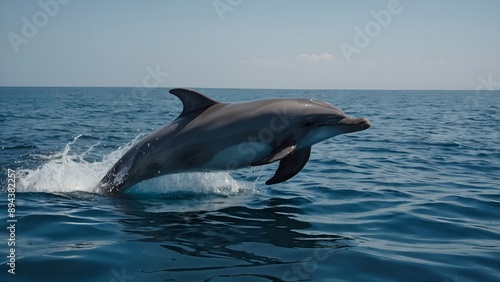 © Oleksandr, Fototapeta premium A dolphin breaching the ocean with exuberance and joy