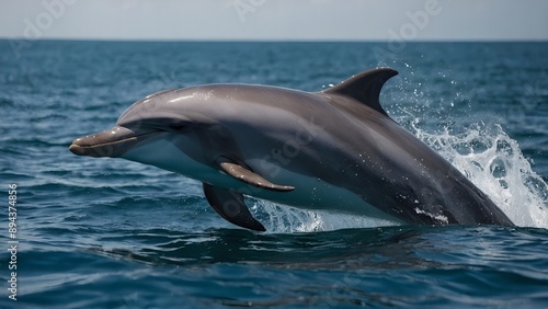 © Oleksandr, Fototapeta premium A dolphin emerging from the ocean with exuberance