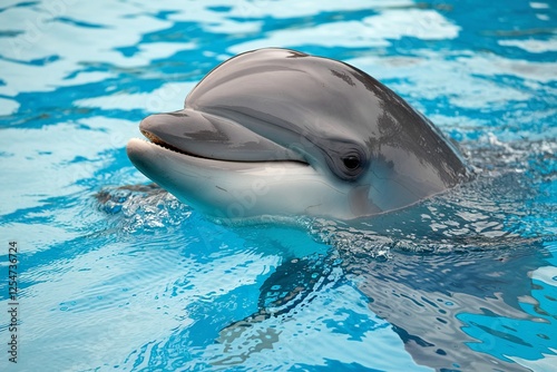 © Lupu, Naklejka premium A dolphin is swimming in a pool with a big smile on its face
