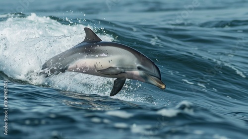 Fototapeta premium A dolphin leaping gracefully out of the ocean water waves